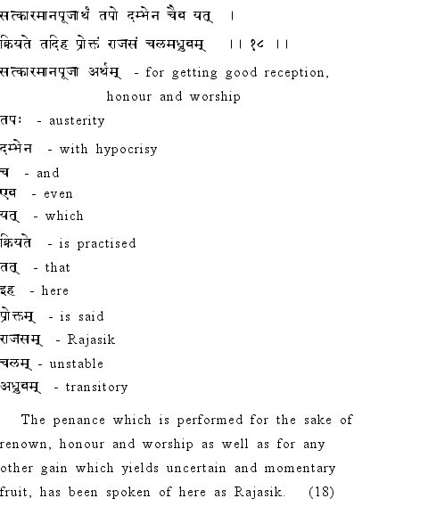 Srimad Bhagavad Gita Sloka selected for the day (random choice) Chapter 17 Sloka 18