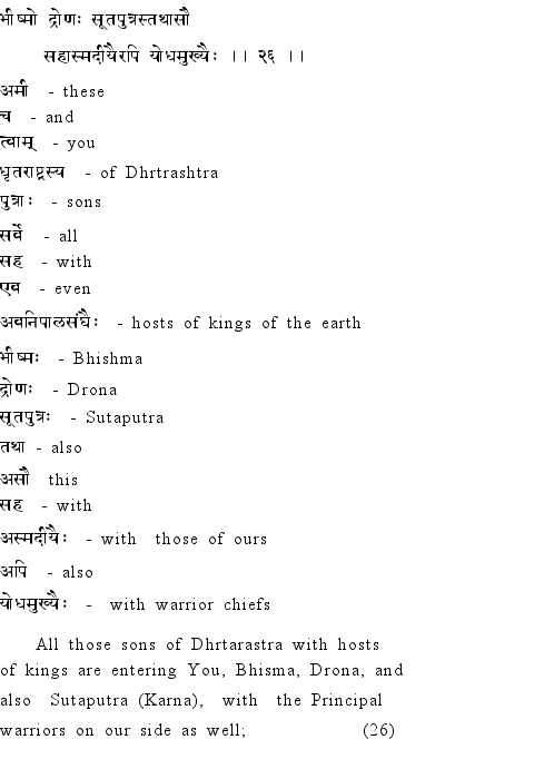Srimad Bhagavad Gita Sloka selected for the day (random choice) Chapter 11 Sloka 26