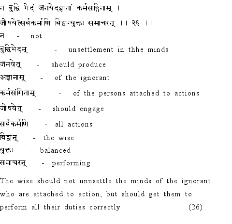 Srimad Bhagavad Gita Sloka selected for the day (random choice) Chapter 3 Sloka 26